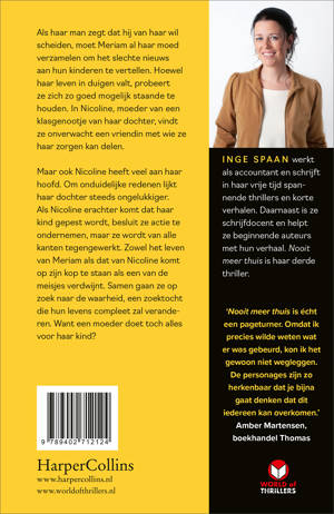 ‘Inge Spaan is heel goed in het beschrijven van de soms zeer tegenstrijdige maar altijd herkenbare gevoelens van beide moeders.’ VN Detective en Thrillergids