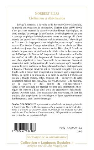 Lorsqu'il formule, à la veille de la Seconde Guerre Mondiale, sa théorie du processus de civilisation, Norbert Elias (1897-1990) n'est pas sans mesurer le caractère profondément idéologique, et donc ambigu, du concept de civilisation. Le développer en tant que "concept empirique idéologiquement neutre et concept clé d'une théorie des processus civilisateurs" tel est néanmoins, l'objectif qui se fixe alors. Ce sont donc ici les travaux plus empiriques du sociologue, et leurs questionnements fondamentaux, que l'auteur interroge.