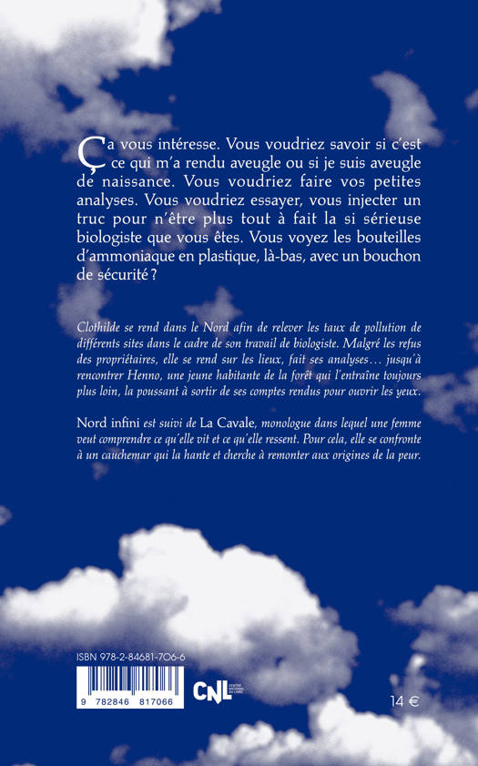 Clothilde, jeune biologiste, part en mission dans le Nord pour effectuer des relevés biométriques sur plusieurs terrains d’usines désaffectés. Nord infini raconte l’histoire de ses recherches scientifiques, de ses rencontres, de son immersion progressive dans des territoires pollués, de la fascination croissante qu’elle éprouve pour des lieux et des êtres souillés, et enfin de l’abandon de son ancienne existence confortable pour approfondir ses recherches et rendre publics les niveaux de contamination qu’elle relève.