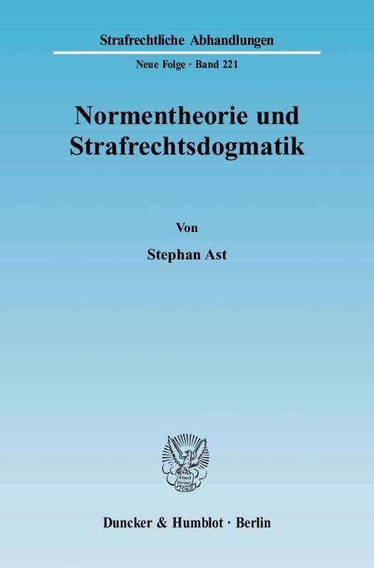 Der normentheoretische Abschnitt des Buches entfaltet die Unterscheidung von Handlungs- und Verursachungsnormen als Normarten, die in engem teleologischen Bezug zueinander stehen. Eine wichtige Beobachtung ist, dass teleologisch aus Verursachungsgeboten Handlungsverbote und aus Verursachungsverboten Handlungsgebote folgen können, hier so genannte "akzessorische Normen". Weiterhin werden "Kenntnisgebote" beschrieben, die sich auf die Normerkenntnis beziehen, sowie Veränderungs- und Zustandsnormen, die den Fokus auf die Wirkungen von Handlungen legen. Schließlich wird der Begriff der Zurechnung definiert als die Annahme eines Normverstoßes, und es werden wichtige Zurechnungsregeln erläutert.