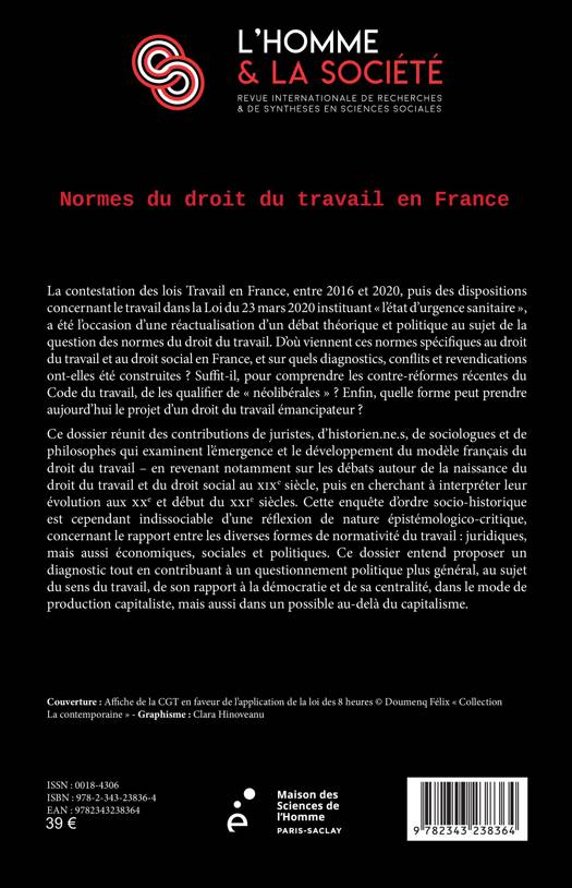 La contestation des lois Travail en France, entre 2016 et 2020, puis des dispositions concernant le travail dans la Loi du 23 mars 2020 instituant « l’état d’urgence sanitaire », a été l’occasion d’une réactualisation du débat théorique et politique au sujet de la question des normes du droit du travail. D’où viennent ces normes ? Sur quels diagnostics, conflits et revendications ont-elles été construites ? Suffit-il, pour comprendre les contre-réformes récentes du Code du travail, de les qualifier de « néolibérales » ? Enfin, quelle forme peut prendre aujourd’hui le projet d’un droit du travail émancipateur ? Ce dossier examine l’émergence et le développement du modèle français du droit du travail. Cette enquête socio-historique est cependant indissociable d’une réflexion de nature épistémologico-critique, concernant le rapport entre les différentes formes de normativité du travail. Elle contribue à un questionnement politique plus général, au sujet du sens du travail, de son rapport à la démocratie du dépassement du capitalisme.