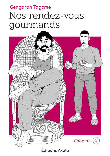 TROISIÈME CHAPITRE Gengoroh TAGAME est de retour avant un nouveau manga tout public ! Dans "Nos rendez-vous gourmands", titre particulièrement feel good, suivez la romance entre deux hommes adultes en pleine crise sanitaire. C'est la crise sanitaire au Japon, mais en tant que commercial, Akira n'a pas d'autre choix que de travailler à l'extérieur de chez lui. Pour le remercier, des clients lui ont offert des choux. Mais comme il ne sait pas cuisiner, il les apporte à Kôji, un de ses amis, en espérant qu'il pourra lui préparer un bon petit plat. Mais est-ce vraiment parce qu'il aime manger qu'Akira se rend de plus en plus souvent chez son ami ?