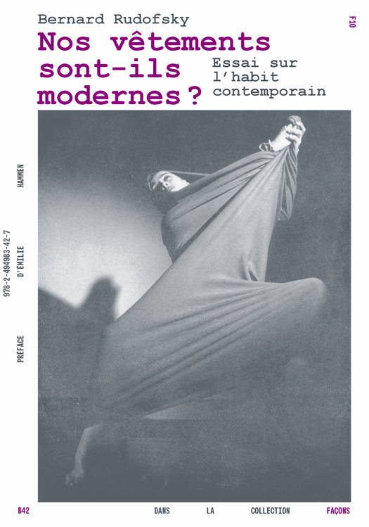 À travers cette étude historiographique et thématique publiée en 1947, Bernerd Rudofsky met en exergue la valeur irrationnelle que l’on confère aux vêtements. En choisissant des exemples concrets et remontant jusqu’à la préhistoire, il compare le rapport au vêtement dans différentes cultures et relève l’influence de l’habillement sur nos sociétés modernes. Il effectue ainsi une lecture sociologique d’une modernité étonnante pour son époque : analyse genrée et critique de l’appropriation culturelle sont ici pressenties avec humour et décalage.