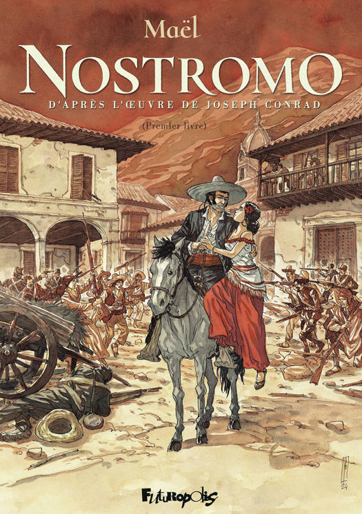 Épique, héroïque et sombre : l'action se passe au XIXᵉ siècle, dans un pays fictif d'Amérique du Sud, le Costaguana. Le noeud de l'histoire se situe autour de la réussite ou de l'échec de la tentative de sécession de Sulaco : cette petite ville portuaire du Costaguana, jusqu'alors épargnée par les troubles, tient sa prospérité et sa relative indépendance de sa situation géographique bien abritée et surtout de la mine d'argent de San Tomé. Cette mine est gérée par Charles Gould, le "roi de Sulaco". Dans ce Costaguana régulièrement agité de soubresauts révolutionnaires, deux généraux putschistes, les frères Montero, provoquent une guerre larvée contre le gouvernement légal du président Ribiera, fidèle ami de Charles Gould. Les notables de Sulaco, craignant de devoir passer sous la coupe de ces généraux brutaux, décident d'envoyer des troupes pour soutenir le parti ribiériste et de mettre l'argent de la mine à l'abri... Ils confient les lingots d'argent au seul homme en qui ils ont confiance : Nostromo, un marin italien devenu le Capataz de Cargadores, c'est-à-dire le chef des dockers de Sulaco... Un grand texte adapté : Maël (Notre Mère la guerre - 4 tomes et plus de 100000 ex) adapte en bande dessinée le chef-d'oeuvre méconnu de Joseph Conrad, dont on commémore cette année le centenaire de la mort.