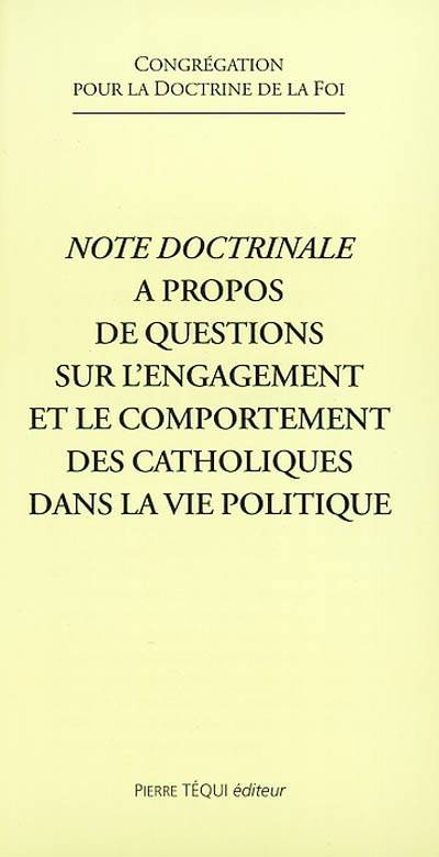 Cette note, rédigée notamment par le Cardinal Ratzinger, veut éclairer un des aspects les plus importants de l'unité de la vie chrétienne : la cohérence entre la foi et la vie, entre l'Evangile et la culture. Elle insiste notamment sur la défense de la vie, sur le danger du pluralisme relativiste.