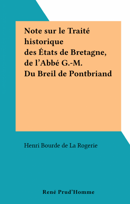 4. Note sur le Traité historique des États de Bretagne, de l'Abbé G.-M. Du Breil de Pontbriand