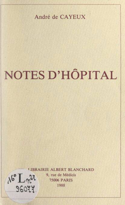 Cet ouvrage est posthume. L'auteur, géologue mondialement réputé, est décédé le 27 décembre 1986, pendant les consultations d'imprimeurs sur un manuscrit provisoire. (...) Le texte correspond principalement au séjour que l'auteur fit à l'hôpital de Créteil, fin 1985, après un premier infarctus ; il succomba à une seconde crise, treize mois plus tard, à l'hôpital de Saint-Nazaire. Cet ouvrage est le dernier d'une œuvre immense, qui comprend plus de 500 titres.