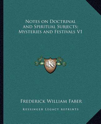 Notes on Doctrinal and Spiritual Subjects; Mysteries and Festivals V1 is a book written by Frederick William Faber. The book is a collection of notes on various doctrinal and spiritual topics, as well as mysteries and festivals. The book is divided into two volumes, with the first volume covering topics such as the nature of God, the Holy Trinity, the Incarnation, and the Atonement. The second volume covers topics such as the Blessed Virgin Mary, the Saints, the Sacraments, and the Liturgy. Faber's writing is deeply rooted in Catholic theology and spirituality, and his notes provide a rich and insightful perspective on these topics. The book is written in a clear and accessible style, making it an excellent resource for anyone interested in deepening their understanding of Catholic doctrine and spirituality. Overall, Notes on Doctrinal and Spiritual Subjects; Mysteries and Festivals V1 is a valuable resource for anyone seeking to deepen their knowledge and understanding of Catholic theology and spirituality.1866. Other volumes in this set include ISBN number(s): 0766174336. Volume 1 of 2: Mysteries and Festivals. The contents of these volume was selected from a large mass of miscellaneous papers. They have been left for the most part in the unfinished state which they were found. This work is intended to serve as a collection wherein may be found considerations in a short form upon the chief mysteries of the faith and the spiritual life, and from which religious communities and those engaged in missionary labor may draw materials for meditation and instruction. To many it will be interesting as an illustration of the methods of thought and work which were habitual with Father Faber.This scarce antiquarian book is a facsimile reprint of the old original and may contain some imperfections such as library marks and notations. Because we believe this work is culturally important, we have made it available as part of our commitment for protecting, preserving, and promoting the world's literature in affordable, high quality, modern editions, that are true to their original work.