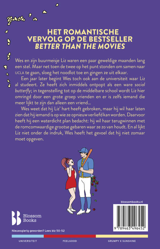 De relatie tussen Wes en Liz gaat al een tijdje goed. Maar net voordat ze samen naar de universiteit gaan, besluit Wes door een gekke gedachtekronkel het uit te maken. In Nothing like the movies zitten de twee een paar maanden later op dezelfde universiteit en is Wes vastbesloten om Liz opnieuw verliefd op hem te laten worden. Hij kent haar als de beste en heeft een plan vol romcomwaardige grote gebaren om haar terug te winnen.