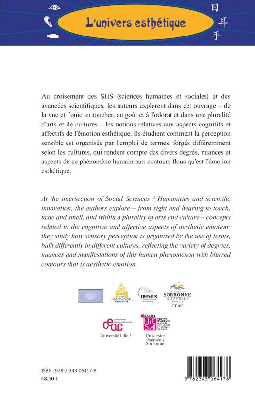 Au croisement des sciences humaines et sociales et des avancées scientifiques, les auteurs explorent - de la vue et l'ouïe au toucher, au goût et à l'odorat et dans une pluralité d'arts et de cultures- les notions relatives aux aspects cognitifs et affectifs de l'émotion esthétique. Ils étudient comment la perception sensible est organisée par l'emploi de termes, forgés différemment selon les cultures. (Quelques articles en anglais).