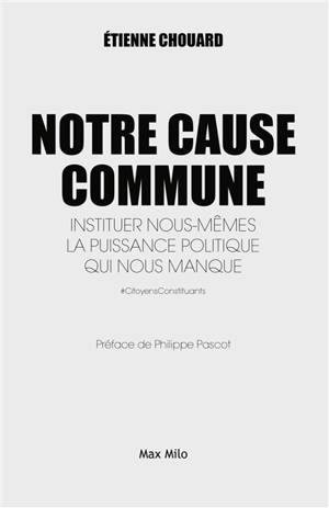 Le peuple, dans un pays qui n'est pas une démocratie (et la France ne saurait l'être), ne peut parler, ne peut agir que par ses représentants (abbé Sieyès, 1789)Je ne suis pas un citoyen (un citoyen est autonome, il vote lui-même ses lois), je ne suis qu'un électeur, un enfant politique qui subit la loi votée par un autre que moi. Notre régime représentatif est un projet antidémocratique, délibéré, volontaire, depuis le début, et l'impuissance politique populaire qu'il verrouille est la cause première des injustices économiques et sociales. Avec le référendum d'initiative citoyenne (RIC), le peuple monte la première marche d'un processus constituant. Il écrit lui-même les règles de la représentation. Les citoyens constituants, et bientôt les autres, ceux qui les regardent et qui jugent que c'est une bonne idée, sont en train de se trouver une cause commune instituer nous-mêmes la puissance politique qui nous manque. Dans un peuple devenu constituant, donc vigilant, il n'y a plus de place pour les tyrans.