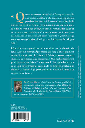 Qu'est-ce qu'une cathédrale? Pourquoi une telle entreprise mobilise-t-elle toute une population pendant des siècles? À travers la multitude de statues peuplant les façades et les murs, du bas jusqu'en haut, comme les centaines de figures sur les vitraux des baies et des rosaces, que voulait-on dire aux hommes et à tous leurs descendants en construisant pour l'éternité? Quel message nous est envoyé aujourd'hui par les bâtisseurs du Moyen Âge? Répondre à ces questions m'a entraînée sur le chemin du sens. L'art du Moyen Âge jouait un rôle d'enseignement destiné à transformer le visiteur. Il fallait retrouver la source passionnantes car j'ai eu l'impression d'aller rejoindre le cÅur de ce qui est représenté, au sein de ce langage symbolique élaboré au Moyen Âge pour enchanter notre Åil mais plus encore notre âme.» Paule Amblard, historienne de l'art, a publié de nombreux ouvrages, notamment chez Diane de Selliers et Albin Michel. Elle est l'auteur, chez Salvator, des Enfants de Notre-Dame