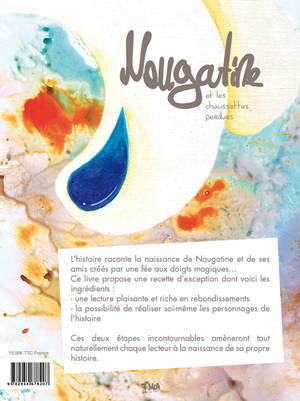 Le livre relate la naissance de Nougatine une petite lapine. "Tout commença par une paire de chaussettes. Ces chaussettes appartenaient à Lila, une petite fille qui hélas ne les rangeait jamais.(...). Un jour la mamie de Lila les ramena chez elle. Elle sortit des ciseaux, de la colle, du fil et quelques morceaux de tissus. Des ses doigts de fée, les chaussettes assemblées se transformèrent...en Nougatine. Nougatine décida ce jour là, d'aller à la recherche de toutes les chaussettes perdues et de la ramener à mamie fée afin qu'elle crée de nouveaux personnages. Cinq nouveaux amis vont naître : Cannelle,l'oursonne. Réglisse, le pingouin. Biscotte, la souris. Pralin le renne et Pépite le singe.