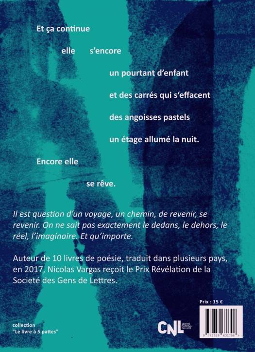 Une histoire de tendresse et de lien. L’émotion prend corps, déborde, la parole naît d’un manque, d’un silence. Il est question d’un voyage, un chemin, de revenir, se revenir. On ne sait pas exactement le dedans, le dehors, le réel, l’imaginaire. Et qu’importe. Dans le livre, on peut trouver deux QR code pour l' enregistrement d'une performance de Nicolas Vargas avec un musicien ainsi que la traduction du texte en espagnol.