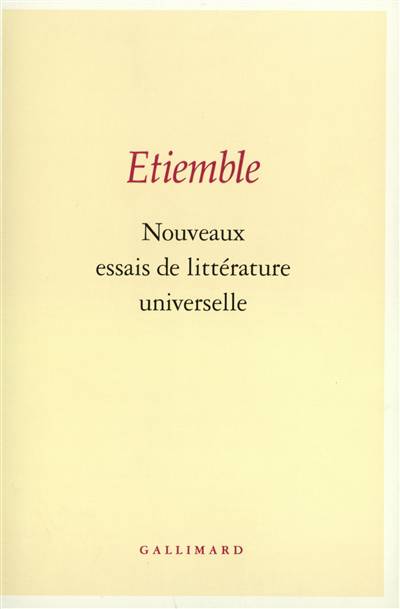 "Si j'ai pris un malin plaisir à ouvrir ces Nouveaux essais de littérature universelle sur la presse du département où je naquis (et ce, dans l'immeuble aujourd'hui détruit où s'imprimait Mayenne-Journal, hebdomadaire de ma sous-préfecture), pour les clore sur la littérature des Pintupis, seuls aborigènes australiens qui survécurent aux massacres perpétrés par les trois cents et quelques forçats dont Sa Gracieuse Majesté décida de "peupler" le continent australien, c'est afin de bien justifier mon titre : Nouveaux essais de littérature universelle ; de Mayenne aux Pintupis, la distance est aussi grande que la différence des cultures. Ou je n'y connais rien à l'universel, ou je ne pouvais pas faire beaucoup mieux pour, je ne dis pas : justifier, mais pour excuser ce deuxième et - vu mon espérance de vie qui dépasse de six ans déjà celle de l'existence moyenne des universitaires, soixante-dix-sept ans (moyenne la plus élevée de toutes les professions françaises) - ultime sans doute volume de ce genre. On y trouvera divers essais sur les cultures européennes, arabes, sur la littérature chinoise et sur la japonaise, sur la grecque ancienne et celle d'aujourd'hui (en la personne de mon cher et grand Stratis Tsirkas, dont une rue d'Athènes porte aujourd'hui le nom), sur la turque et la bengalie. Suffit, ce me semble, à justifier mon titre."Étiemble.