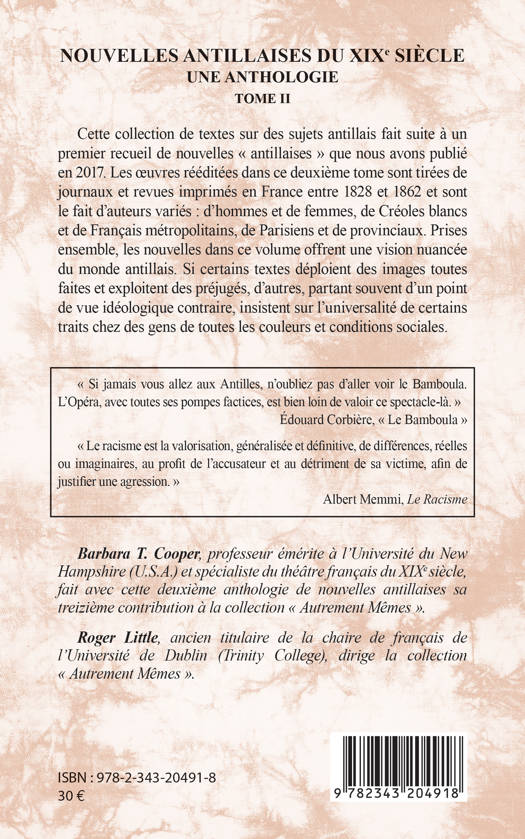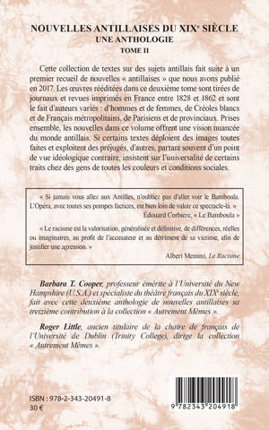Les oeuvres rééditées dans ce deuxième tome sont tirées de journaux et revues imprimés en France entre 1828 et 1862 et sont issus d'auteurs variés. Si certains textes déploient des images toutes faites et exploitent des préjugés, d'autres, partant souvent d'un point de vue idéologique contraire, insistent sur l'universalité de certains traits chez des gens de toutes les couleurs et conditions sociales.