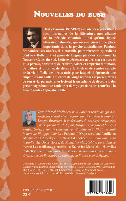 Henry Lawson (1867-1922) est l’un des représentants incontournables de la littérature australienne de la période coloniale, ainsi qu’une figure littéraire nationale, qui occupe encore une place importante dans la psyché australienne. Pendant de nombreuses années, il a travaillé pour plusieurs quotidiens dont le « Bulletin », et passé de longues périodes à sillonner la Nouvelle-Galles du Sud. Cette expérience a nourri son écriture et lui a permis, dans un style réaliste, coloré et empreint d’humour, de pathos et d’ironie, de décrire le bush et de rendre compte de la vie diffi cile des broussards pour lesquels il éprouvait une empathie sans faille. Ce choix de vingt nouvelles représentatives de son style, permettra au lectorat francophone de découvrir des personnages hauts en couleur et de voyager dans des contrées à la beauté aride et époustouflante.