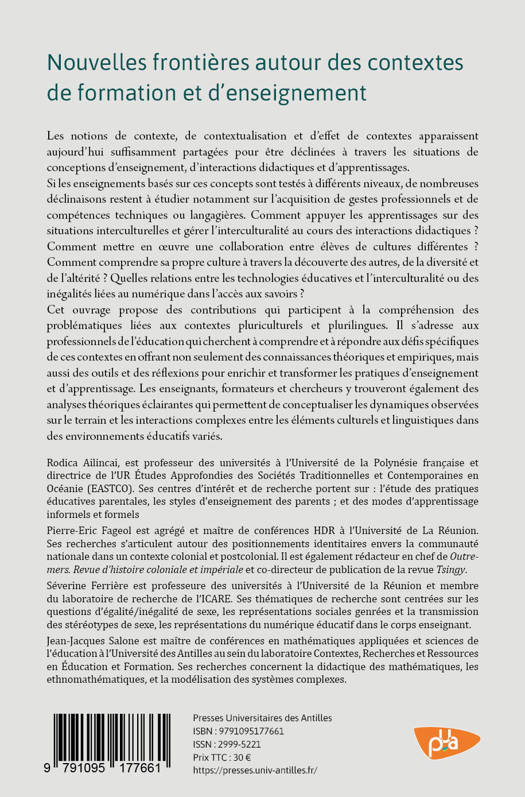 Si les enseignements basés sur ces concepts sont testés à différents niveaux, de nombreuses déclinaisons restent à étudier notamment sur l’acquisition de gestes professionnels et de compétences techniques ou langagières. Comment appuyer les apprentissages sur des situations interculturelles et gérer l’interculturalité au cours des interactions didactiques ? Comment mettre en œuvre une collaboration entre élèves de cultures différentes ? Comment comprendre sa propre culture à travers la découverte des autres, de la diversité et de l’altérité ? Quelles relations entre les technologies éducatives et l’interculturalité ou des inégalités liées au numérique dans l’accès aux savoirs ? Voici quelques questions auxquelles l’ouvrage "Nouvelles frontières autour des contextes de formation et d'enseignement" se propose de répondre.