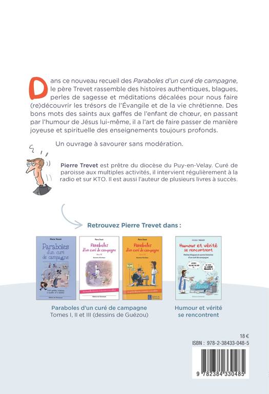 Dans ce nouveau recueil, le père Trevet réunit des histoires authentiques, blagues, perles de sagesse et méditations décalées pour nous faire savourer l’humour présent dans les évangiles et la vie des chrétiens. Des bons mots des saints aux gaffes de l’enfant de chœur, en passant par l’humour de Jésus lui-même, il a l’art de faire passer de manière joyeuse et spirituelle des enseignements toujours profonds. Un ouvrage à savourer sans modération.