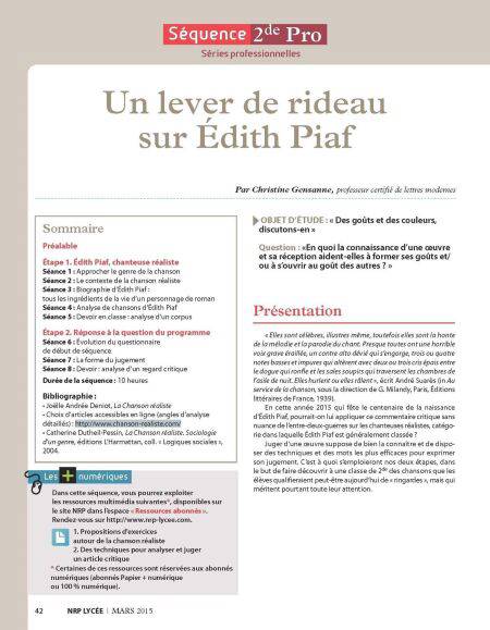 Séquence Bac pro : Un lever de rideau sur Edith Piaf