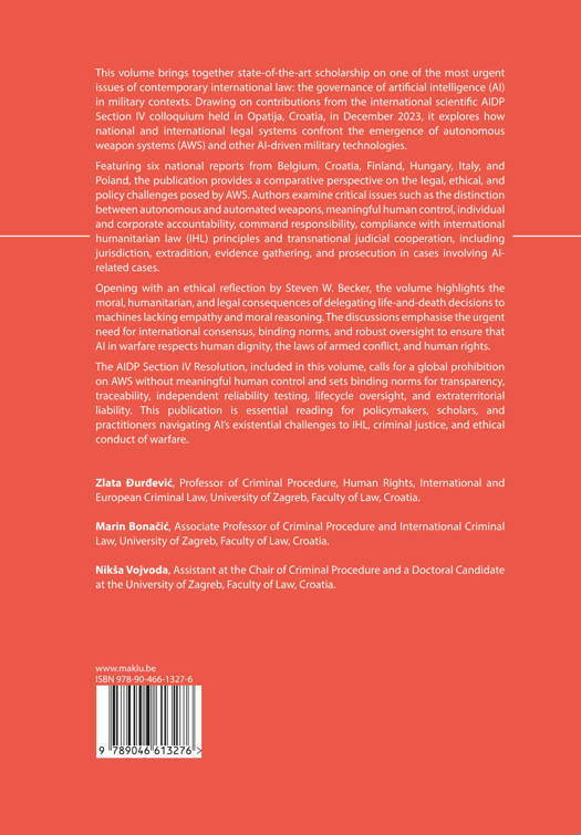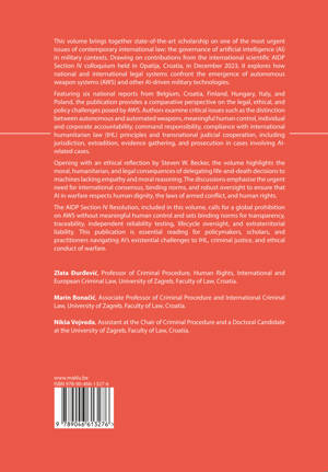 This volume brings together state-of-the-art scholarship on one of the most urgent issues of contemporary international law: the governance of artificial intelligence (AI) in military contexts. Drawing on contributions from the international scientific AIDP Section IV colloquium held in Opatija, Croatia, in December 2023, it explores how national and international legal systems confront the emergence of autonomous weapon systems (AWS) and other AI-driven military technologies.
