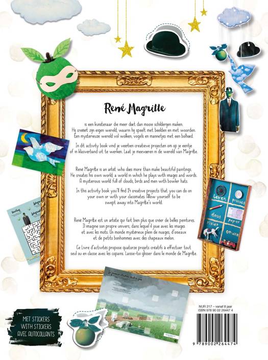 René Magritte is een kunstenaar die meer doet dan mooie schilderijen maken. Hij creëert zijn eigen wereld, waarin hij speelt met beelden en met woorden. Een mysterieuze wereld vol wolken, vogels en mannetjes met een bolhoed. In dit activity book vind je veertien creatieve projecten om op je eentje of in klasverband uit te werken. Laat je meevoeren in de wereld van Magritte.