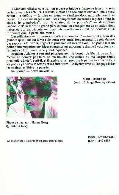 M. Alfaker construit un espace scénique et laisse au lecteur le soin de faire vivre les acteurs. Ses réflexions tournent autour des grandes questions sur la vie et le doute existentiel fondamental. Le rôle du moi par rapport à l'univers est mis en avant.