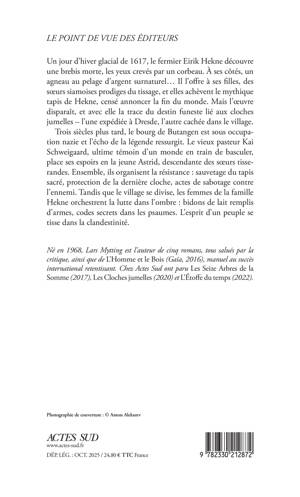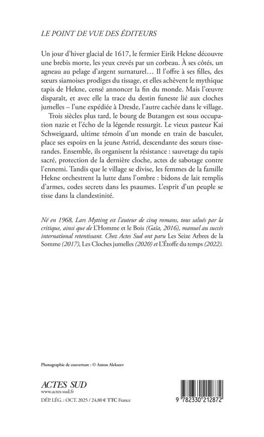 Butangen est sous occupation nazie et l'écho de la légende des cloches jumelles ressurgit. Le vieux pasteur Kai Schweigaard, dernier témoin d'un monde en train de basculer, place ses espoirs en la jeune Astrid, descendante des soeurs tisserandes. Ensemble, ils organisent la résistance : sauvetage du tapis sacré, protection de la dernière cloche, actes de sabotage envers l'ennemi. Tandis que le village se divise, les femmes de la famille Hekne orchestrent la lutte dans l'ombre : bidons de lait remplis d'armes, codes secrets dans les psaumes. L'esprit d'un peuple se tisse dans la clandestinité.