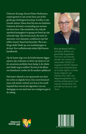 Ontmoet de jonge docent Pieter Panhuissen! Als na de laatste les voor de herfstvakantie blijkt dat hij vergeten is zijn dating-app uit te zetten, liggen opeens zijn nickname, foto's en seksuele voorkeuren op straat. Sindsdien wordt hij lastig gevallen door empty profiles. Zijn het leerlingen die hem volgen, of is het één van zijn directe collega's? Ontmoet de bonte verzameling aan mensen om hem heen! Een teamleider propageert radicale openheid en legt graag een hand op zijn schouder. Een levenscoach combineert tarot met stoïcisme voor dummies. Naast het berenduo The Lion Kings duikt Nadir op, een moslimjongen in de kast. Een veelbelovende relatie ligt binnen handbereik, maar kun je bij elkaar een thuishaven vinden als de maskers opblijven? Nul meter afstand is een spannende reis door het echte en digitale leven van de mens. Een zwart-komisch maar ook intiem verhaal over hoe je lot wordt bepaald door toeval, het algoritme van een datingapp en een stoel met een vuistgroot gat in de zitting.