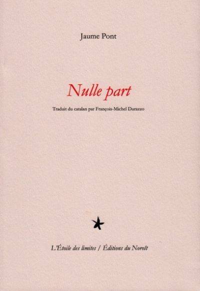 « Après sept recueils salués par la critique, déjà tous traduits en français, Jaume Pont poursuit dans Nulle part son labeur de sourcier au coeur du labyrinthe. En quête du jaillissement, de l'éclosion, il creuse à la source du langage pour célébrer les noces du moi avec l'autre, celui des hommes et des bêtes, celui des éléments conjurés...