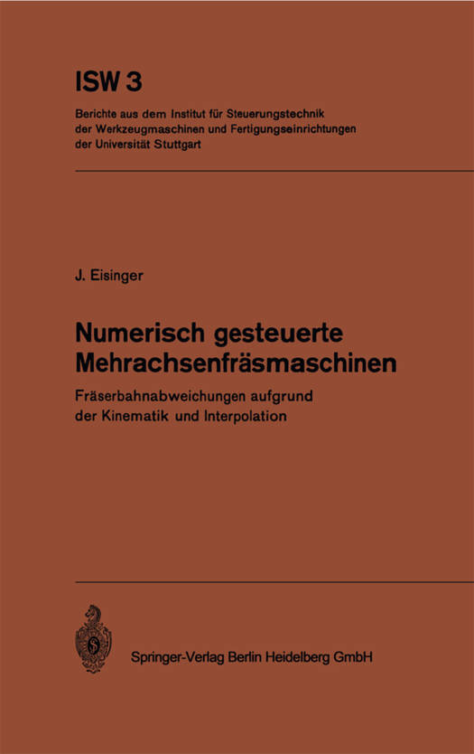 Die vorliegende Arbeit entstand während meiner Tätigkeit als wissenschaftlicher Assistent am Institut für Steuerungs- technik der Werkzeugmaschinen und Fertigungseinrichtungen der Universität Stuttgart. Herrn Prof. Dr. -Ing. G. Stute, dem Leiter des Institutes, danke ich für sein stetes Interesse und die wertvollen Anregungen während des Entstehens dieser Arbeit ganz herzlich. Mein Dank gilt auch Herrn Prof. Dipl. -Ing. K. Tuffentsammer für die eingehende Durchsicht der Arbeit und die Vorschläge zu ihrer Verbesserung. Außerdem möchte ich allen Mitarbeitern des Institutes danken, die mir durch kritische Hinweise und häufige Diskussionen sehr geholfen haben. Dieser Dank gilt besonders Herrn Dr. -Ing. A. Storr und Herrn Dipl. -Ing. H. Damsohn. Jörg Eisinger - 5 - Inhaltsverzeichnis Seite Vorwort 3 Schrifttum 8 Zeichenerklärung 11 1. Einleitung 16 2. Spezielle Bauformen von Mehrachsenfräsmaschinen 19 2. 1. Kinematik und Werkzeuglage an Mehrachsenfräs- 19 maschinen Bauformen der untersuchten Mehrachsenfr sma- 2. 2. 19 schinen 3. Kinematische Abweichungen von einem"Cut-Vector" 22 3. 1. Die Simultanbewegung 22 3. 2. Interpolation bei Mehrachsenfräsmaschinen 23 3 - 2 1. - Lineare Interpolat ion 24 3. 2. 2. Parabolische Interpolation 24 3. 2. 3. Zirkulare Interpolation 25 3. 3 Transformationsgleichungen 25 3. . . . Abweichungen von der Sollfräserbahn bei Mehr- 29 achsenfräsmaschinen 3. " . 1. Die Zweideutigkeit der Werkzeugachslage 30 3 . . . . 1. 1. Trägheitsmomente bezogen auf die rota- 33 torischen Achsen 3. ". 1. 2. Durchbiegung des Ständers und des Aus- 34 legers 3 . . . . 1. 3. Kollisionsbetrachtung 34 3. 4. 1. 4.
