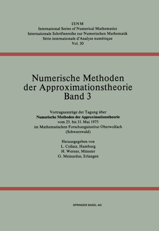 Der vorliegende Band stellt Vortragsmanuskripte einer am Mathematischen Forschungsinstitut, Oberwolfach, in der Zeit vom 25. bis 31. Mai 1975 veran- stalteten Tagung zusammen, die unter der Leitung der Unterzeichner stand. Die letzten dieser Tagungen über numerische Methoden der Approximations- theorie fanden 1971 und 1973 statt - der Schwerpunkt lag bei Fragen der Numerik von Algorithmen zur Darstellung von Funktionen -, ließen aber bereits ein wachsendes Interesse an Anwendungen erkennen. Die diesjährige Tagung war gekennzeichnet durch die Behandlung praktischer AufgabensteI- lungen sowie durch die Einbeziehung der Anwendungen aus Nachbargebie- ten bzw. die Verwendung der Methoden dieser Gebiete in der Approxima- tionstheorie, insbesondere wurde auch auf die Beziehungen von Optimierung und Kontrolltheorie zu speziellen approximationstheoretischen Aufgaben eingegangen. Der starke Einfluß auf die numerischen Methoden zur Behand- lung von Differentialgleichungen wurde etwa bei der Methode der finiten Elemente oder bei Kollokationsaufgaben deutlich. So ist zu hoffen, daß auch diese Tagung dazu beigetragen hat, Theorie und Anwendungen wieder stärker zu verbinden. Die spezifische Atmosphäre des Forschungsinstituts stimulierte einen intensi- ven, durch die breite internationale Streuung der Tagungsteilnehmer verstärk- ten, fruchtbaren Gedankenaustausch. Zum Erfolg der Tagung trug - wie immer - die hervorragende Betreuung durch die Mitarbeiter und Angestellten des Forschungsinstituts und das verständnisvolle Entgegenkommen von Herrn Kollege Barner bei. Unser besonderer Dank gilt ferner dem Birkhäuser Verlag für die sehr gute Ausstattung des Buches. L. COLLATZ, G. MEINARDUS, H. WERNER Inhaltsverzeichnis ANSELONE, P. M., LEE, J. W.: Double Approximation Methods for the Solution of Fredholm Integral Equations . . . . . . . . . . . . . . . . . . . . . . . . . . . . . . . . . . . . . . . . . . . . . . . . . . . .