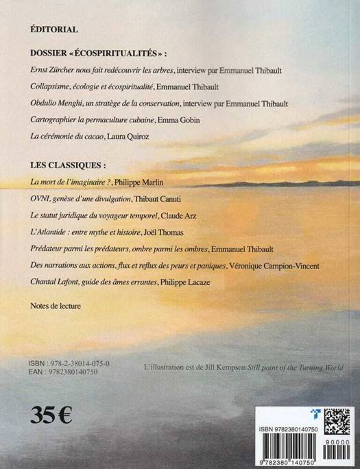 DOSSIER «ÉCOSPIRITUALITÉS» - Ernst Zürcher nous fait redécouvrir les arbres, interview par Emmanuel Thibault - Collapsisme, écologie et écospiritualité, Emmanuel Thibault - Obdulio Menghi, un stratège de la conservation, interview par Emmanuel Thibault - Cartographier la permaculture cubaine, Emma Gobin - La cérémonie du cacao, Laura Quiroz