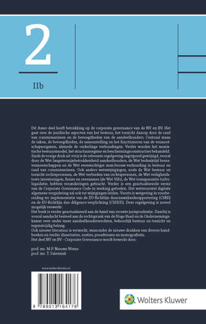 Corporate Governance omvat de wijze waarop leiding wordt gegeven aan de NV en BV, hoe daarop toezicht wordt gehouden en wat de bevoegdheden zijn van de kapitaalverschaffers. Asser 2-IIb Corporate Governance geeft een grondig en actueel overzicht van de juridische aspecten die op dit terrein relevant zijn. In deze druk vind je alle ontwikkelingen tot 1 februari 2025 verwerkt. Sinds de vorige editie is de wetgeving voor de NV en BV op vele fronten gewijzigd, vooral door de Wet langetermijnbetrokkenheid aandeelhouders, de Wet bedenktijd beursvennootschappen en de Wet evenwichtiger man/vrouw-verhouding in bestuur en raad van commissarissen. Deze wetten hebben onder meer geleid tot een materiële wijziging van de bezoldigingsregels inzake het bestuur en de raad van commissarissen, een nieuwe regeling inzake transacties met verbonden partijen, een wettelijke bedenktijd en een verplicht man/vrouw-quotum en streefcijferregeling. Verder is een nieuwe versie van de Corporate Governance Code in werking getreden. Daarnaast zijn nieuwe wetten in voorbereiding, zoals het wetsvoorstel digitale algemene vergadering en wetsvoorstellen ter implementatie van de EU-Richtlijn duurzaamheidsrapportering (CSRD) en de EU-Richtlijn due diligence- verplichting (CSDDD). Deze nieuwe regelgeving wordt uitgebreid behandeld in dit deel.