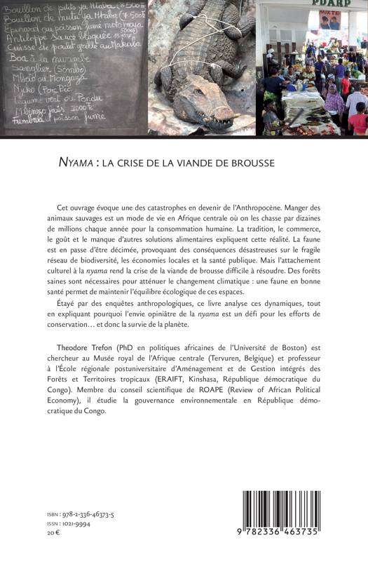 Cet ouvrage évoque une des catastrophes en devenir de l’Anthropocène. Manger des animaux sauvages est un mode de vie en Afrique centrale où on les chasse par dizaines de millions chaque année pour la consommation humaine. La tradition, le commerce, le goût et le manque d’autres solutions alimentaires expliquent cette réalité. La faune est en passe d’être décimée, provoquant des conséquences désastreuses sur le fragile réseau de biodiversité, les économies locales et la santé publique. Mais l’attachement culturel à la nyama rend la crise de la viande de brousse difficile à résoudre. Des forêts saines sont nécessaires pour atténuer le changement climatique : une faune en bonne santé permet de maintenir l’équilibre écologique de ces espaces. Étayé par des enquêtes anthropologiques, ce livre analyse ces dynamiques, tout en expliquant pourquoi l’envie opiniâtre de la nyama est un défi pour les efforts de conservation… et donc la survie de la planète.