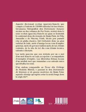 Ce dictionnaire occitan (gascon) / français compte environ 110 000 entrées en trois tomes. Il rassemble l’intégralité du Dictionnaire français-occitan en deux volumes de Per Noste, retourné dans le sens occitan (gascon) / français auquel s’ajoute le contenu des dictionnaires de Simin Palay, de Félix Arnaudin et de Vincent Foix, mis pour la première fois en graphie classique. Vous y trouverez donc une grande variété de lexique, des mots d’usage local comme d’emploi général, des mots d’hier mais également des mots d’aujourd’hui, des termes courants, de la vie de tous les jours comme des termes techniques, savants ou littéraires. Les mots gascons sont traduits par un ou plusieurs mots français pour chaque acception et accompagnés d’exemples d’emploi. Les différentes formes locales d’un même mot renvoient à une entrée unique qui détaille les sens. D’un volume comparable au Tresor dóu Felibrige de Frédéric Mistral, et dépassant celui du Dictionnaire du béarnais et du gascon modernes de Simin Palay, cet ouvrage espère mettre notre langue sur la voie du XXIe siècle.