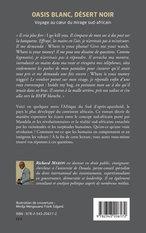 Ce roman décrit les écarts entre le concept sud-africain porté par Mandela et les révolutionnaires et la réalité sud-africaine entachée par les vicissitudes et les turpitudes humaines. Qu'est-ce qu'une vraie révolution ? Comment est-ce que les humains en comprennent et en intègrent les valeurs ? Voici en quelques mots l'Afrique du Sud d'après-apartheid, le pays le plus "développé" du continent africain.
