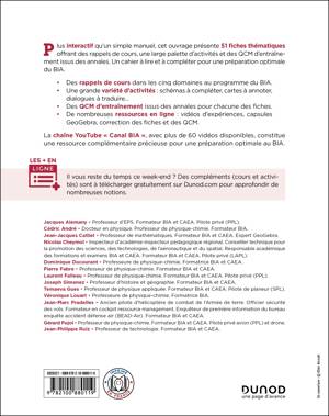 - Des rappels de cours dans les cinq domaines au programme du BIA.