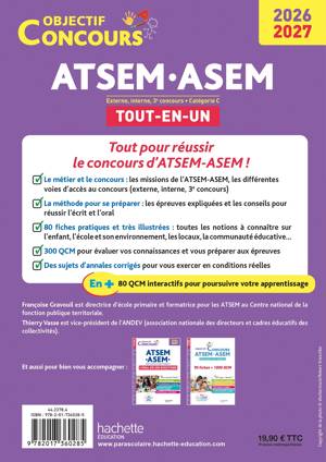 Retrouvez en plus, 80 QCM interactifs pour poursuivre votre apprentissage !Ce livre intéressera les candidats au concours, mais aussi les ATSEM en poste qui y trouveront une multitude d’informations sur l’école maternelle !