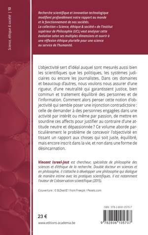 Dans un climat marqué par un scepticisme grandissant devant les discordes scientifiques et par une montée des populismes qui s'appuient sur des fake news ou « vérités alternatives », il est important de pouvoir encore s'appuyer sur la notion d'objectivité. Mais qu'est-ce qu'être objectif aujourd'hui ? Au-delà d'un état de l'art théorique sur la question, Objectivité(s) mobilise des chercheuses et chercheurs d'horizons divers pour remettre cette notion au goût du jour.