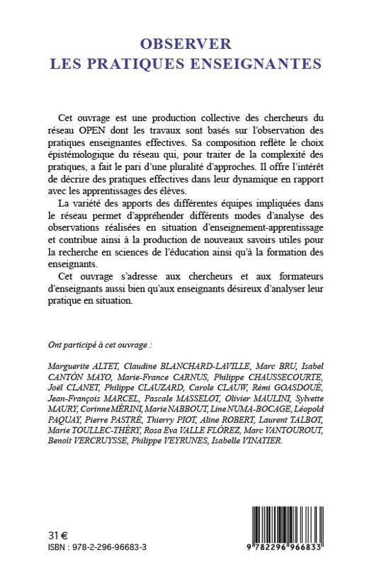 Voici une production collective de chercheurs du réseau OPEN, dont les travaux sont basés sur l'observation des pratiques enseignantes. Il offre l'intérêt de décrire des pratiques effectives dans leur dynamique, en rapport avec les apprentissages des élèves.