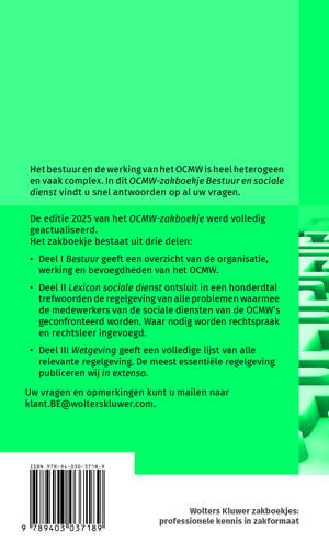 OCMW Zakboekje Bestuur en sociale dienst is de meest volledig gids voor wie professioneel bij de Vlaamse OCMW's betrokken is. Of u nu voor de overheid werkt, bij de politie of op een andere manier verbonden bent aan de Vlaamse OCMW's, dit zakboekje is gegarandeerd een aanwinst voor uw dagelijkse werkzaamheden.