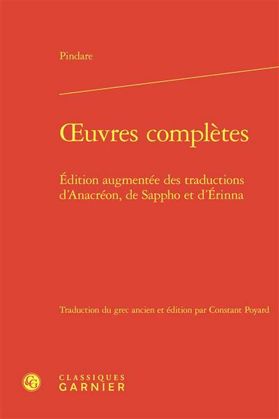 Oeuvres complètes : édition augmentée des traductions d'Anacréon, de Sappho et d'Erinna
