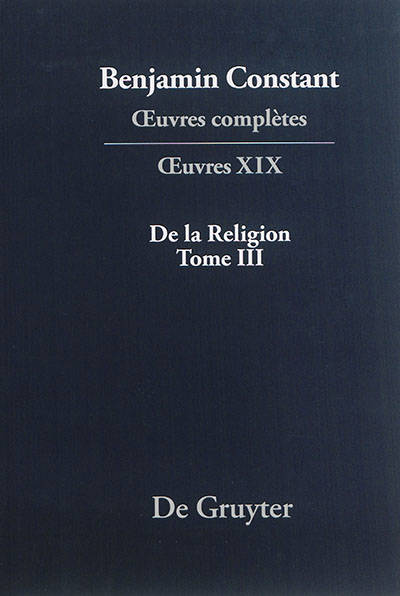 Ce tome XIX contient le texte du troisième volume de De la Religion, consacré aux éléments constitutifs du polythéisme sacerdotal et du polythéisme indépendant de la direction des prêtres (livres VI et VII) et dans le livre VIII à une analyse des poèmes homériques. Nous donnons le texte publié par Constant en 1827 avec, dans l'apparat critique, les variantes des manuscrits datables entre 1825 et 1827. Les textes complémentaires reproduisent les matériaux manuscrits de la même époque qui n'ont pu être intégrés dans l'apparat parce que les divergences textuelles étaient trop importantes ou parce que Constant les a écartées de son volume. A cela s'ajoutent des documents de travail (suites d'idées, notes bibliographiques commentées, notes de lecture) qui jettent une lumière vive sur la composition parfois difficile de ce volume.
