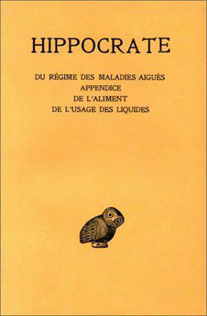 La dietetique avait, dans la medecine grecque, un role de premiere importance. En effet, en l'absence de certaines connaissances, comme celle des microbes, les aliments etaient, avec l'air, et les climats, la principale cause des maladies. De la toute une serie de regimes, adaptes aux divers maux, que l'on trouve tant dans les traites cnidiens que dans les autres traites de la Collection hippocratique, et meme chez Platon: l'auteur de nos traites, dont l'on ignore s'ils sont d'Hippocrate meme ou d'un de ses eleves, s'eleve contre les croyances et les remedes obscurantistes et propose une theorie du regime fonde sur l'equilibre et la reconnaissance des facteurs exterieurs, tels que l'age, le sexe, le lieu, les vents et les saisons. La presente edition regroupe en deux volumes Du Regime, Du Regime des Maladies aigues, l'Appendice, De l'Aliment ainsi que De L'Usage des liquides. La notice introductive fournit un panorama de la dietetique dans la medecine grecque classique depuis les Pythagoriciens, adeptes du vegetarianisme, jusqu'a Platon qui fait de Herodicos de Selymbrie le fondateur de la dietetique. Vient ensuite un plan detaille du traite le plus important, Du Regime, assorti d'un bref commentaire. L'Histoire de la tradition manuscrite et des differentes editions est relatee en detail. Chaque traite est precede d'une notice explicative et possede son propre Index Verborum. Des notes accompagnent la lecture et sont completees par des notes additionnelles destinees au lecteur soucieux d'approfondir. Texte etabli et traduit par Robert Joly.