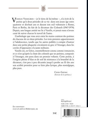 Ces poèmes ont été écrits à deux périodes précises de la vie de l'écrivain : d'une part, dans son jeune âge entre ses 14 et ses 18 ans, et, d'autre part, durant son exil volontaire à Rome, Paris et Berlin du fait de la dictature des Colonels entre 1967 et 1974.
