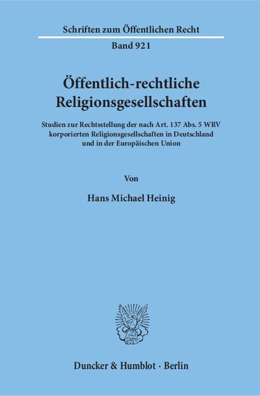Der Autor versucht diese Spannung des Staatskirchenrechts zwischen Tradition und Transformation am Beispiel der öffentlich-rechtlichen Religionsgesellschaften nachzuzeichnen. Im Vordergrund steht die systematische Darstellung des Rechtsstatus, den die nach Art. 137 V WRV korporierten Religionsgesellschaften im deutschen und europäischen Recht einnehmen. Herausgekommen ist ein »Kompendium des Religionsrechts«, in dem auf verfassungstheoretische Grundlagen ebenso eingegangen wird wie auf aktuelle Einzelfragen zur öffentlich-rechtlichen Rechtsform.