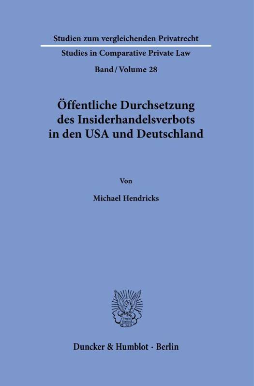 English summary: Public Enforcement of the Insider Trading Prohibitions in the US and Germany Effective law enforcement is particularly important in the area of insider trading. The United States can be thought of as the forerunner nation when it comes to enforcement of the capital market laws. By virtue of the Market Abuse Regulation, the German authorities, for a more effective enforcement of the insider trading prohibitions, were equipped with new powers and sanctions. The US equivalents of these have long proven in the fight against insider trading in the US. Against this background, the book compares the public enforcement of the insider trading prohibitions in the US and Germany. German description: Insbesondere im Bereich der Insiderverbote ist die effektive Rechtsdurchsetzung von herausragender Bedeutung. Die USA konnen in diesem Feld als Vorreiternation angesehen werden. Mit der Marktmissbrauchsverordnung und den Finanzmarktnovellierungsgesetzen wurden hierzulande neue Kompetenzen und Sanktionen zur offentlichen Durchsetzung der Marktmissbrauchsverbote geschaffen, deren Pendants sich in den USA schon lange bei der Bekampfung von Insiderhandel bewahrt haben.Vor diesem Hintergrund liefert die Arbeit eine tiefgehende Darstellung der verschiedenen Rechtsdurchsetzungsforen - und der darin jeweils ergreifbaren Massnahmen und verhangbaren Sanktionen - fur das public enforcement in den USA und vergleicht anschliessend die verschiedenen Rechtsdurchsetzungsforen und Rechtsfolgenseiten der Insiderverbote mit denen in Deutschland. Sie zeigt, dass die in der hiesigen Kapitalmarktpraxis auftretenden Probleme und Fragen bei der Rechtsdurchsetzung haufig mit denen in den USA vergleichbar sind. Entsprechend bilden die Befunde zur US-amerikanischen Rechtslage eine substantielle Quelle fur die Bewertung ausgewahlter Fragen der Rechtsdurchsetzung in Deutschland - etwa in Bezug auf die treble damages, die nunmehr als Sanktion fur ein Insidergeschaft verhangt werden konnen.