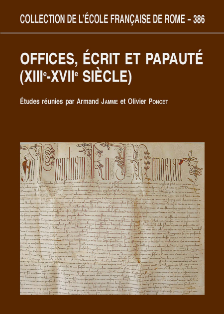 La papauté connaît, entre XIIIe et XVIIe siècle, des évolutions remarquables qui coïncident avec l’affirmation de l’État en Europe occidentale. L’écrit, qui permet à toute autorité politique d’immuniser, de statuer, d’informer, de conserver, est un des principaux instruments de sa construction. Ce volume, second écho d’une recherche collective internationale, tente de croiser les questionnements diffus portant sur ces deux objets historiographiques. Sans prétendre offrir une analyse globale de la culture écrite des organes du pouvoir, dans et hors de la curie, ni proposer une véritable histoire documentaire de l’institution pontificale, les études présentées ici permettent de cerner les structures d’évolution de la documentation dans divers secteurs d’intervention de la papauté. Elles appréhendent les interrogations que les mécanismes de rédaction, de transmission et de conservation des informations suscitent. Elles soulèvent avec acuité des questions économiques fondamentales que les registres occultent, voire tentent de celer. De Rome en Avignon, par Pérouse, Bologne et la Savoie, des cours provinciales aux familles cardinalices, de l’armée à la Pénitencerie, du maçon à l’artiste, des premières ébauches de l’écrit à l’évasion du secret d’archives, la richesse des thèmes étudiés, des analyses apportées et des interprétations historiques parcourues approfondissent de manière déterminante nos connaissances de cette forme de pouvoir unique qu’est la papauté médiévale et de l’âge moderne.