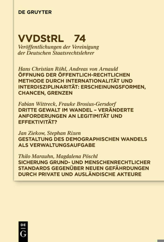 Dieser Band enthält die Referate und Diskussionen auf der Tagung der Deutschen Staatsrechtslehrer in Düsseldorf vom 1. bis 4. Oktober 2014.
